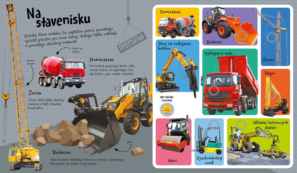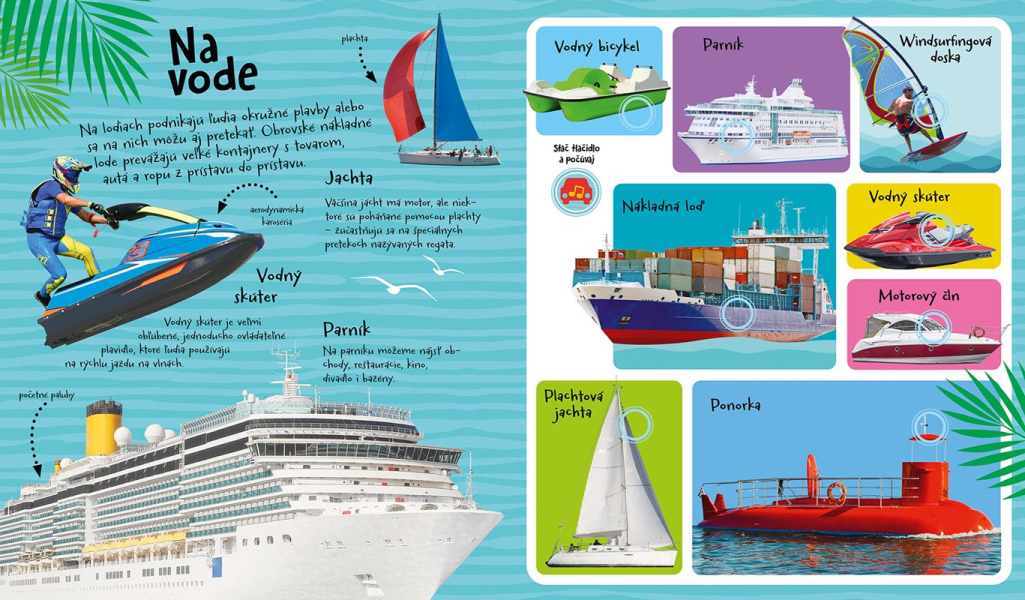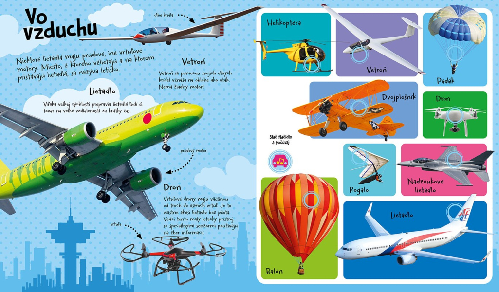 Táto krásna farebná zvuková knižka zavedie malých čitateľov do sveta dopravných prostriedkov. Stačí sa dotknúť ich obrázkov a tie na stránkach ožijú. Pri spoznávaní prostriedkov prepravy, aktívneho oddychu či záchrany a?počúvaní zvukov, ktoré vydávajú, zažijú deti kopec zábavy!